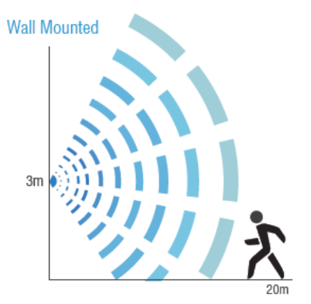 Εμβέλεια ανίχνευσης, Μέγιστο ø14m (τοποθέτηση σε οροφή), Μέγιστο ø20m (τοποθέτηση σε τοίχο)